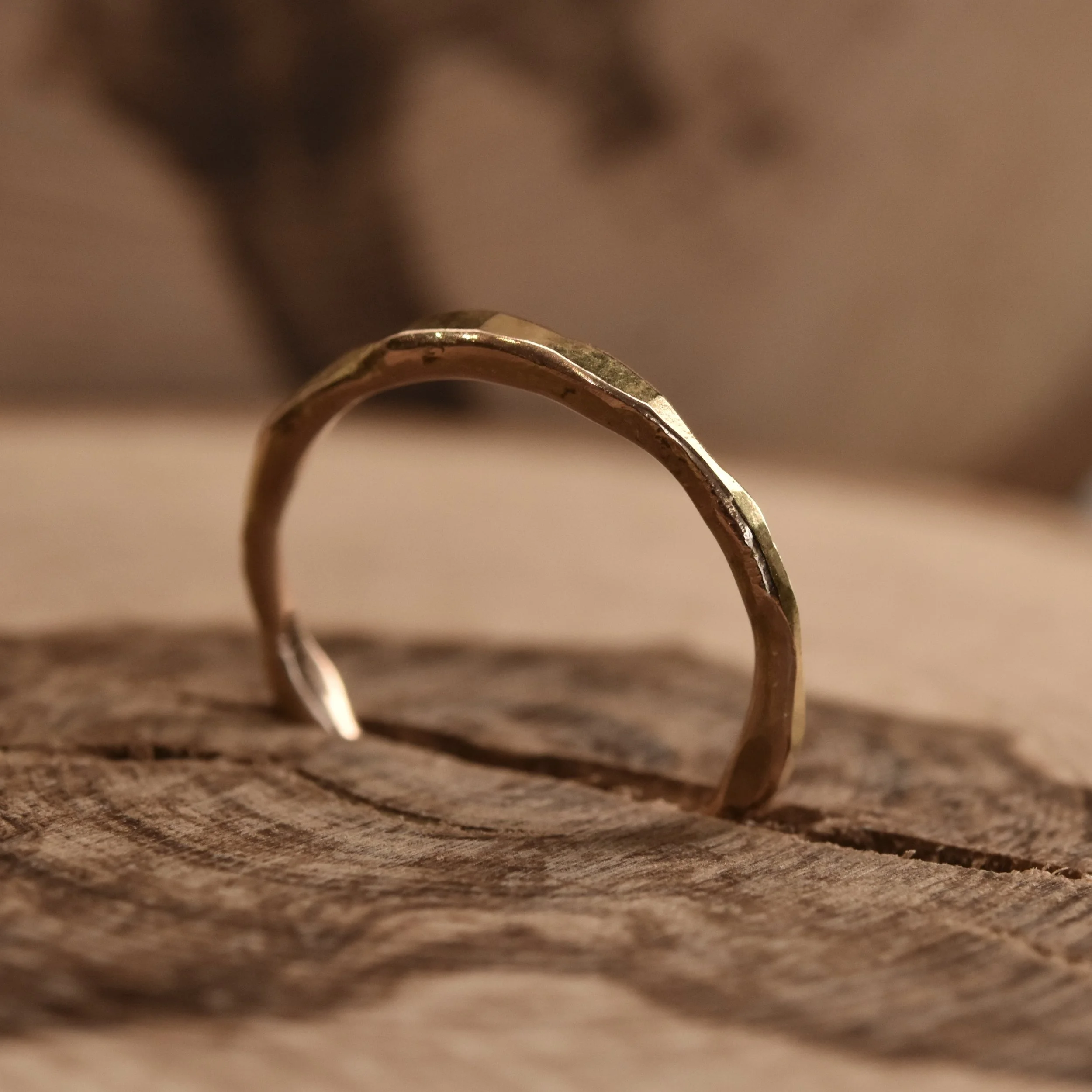 Indulge in the artistry of this handcrafted 18ct red Fairtrade Gold ring. Its organic, molten texture offers a captivating departure from the traditional wedding band—an elegant fusion of classic and contemporary. The radiant hue of the red Fairtrade Gold infuses warmth into the design. A conscious choice, crafted for those who appreciate ethical elegance.