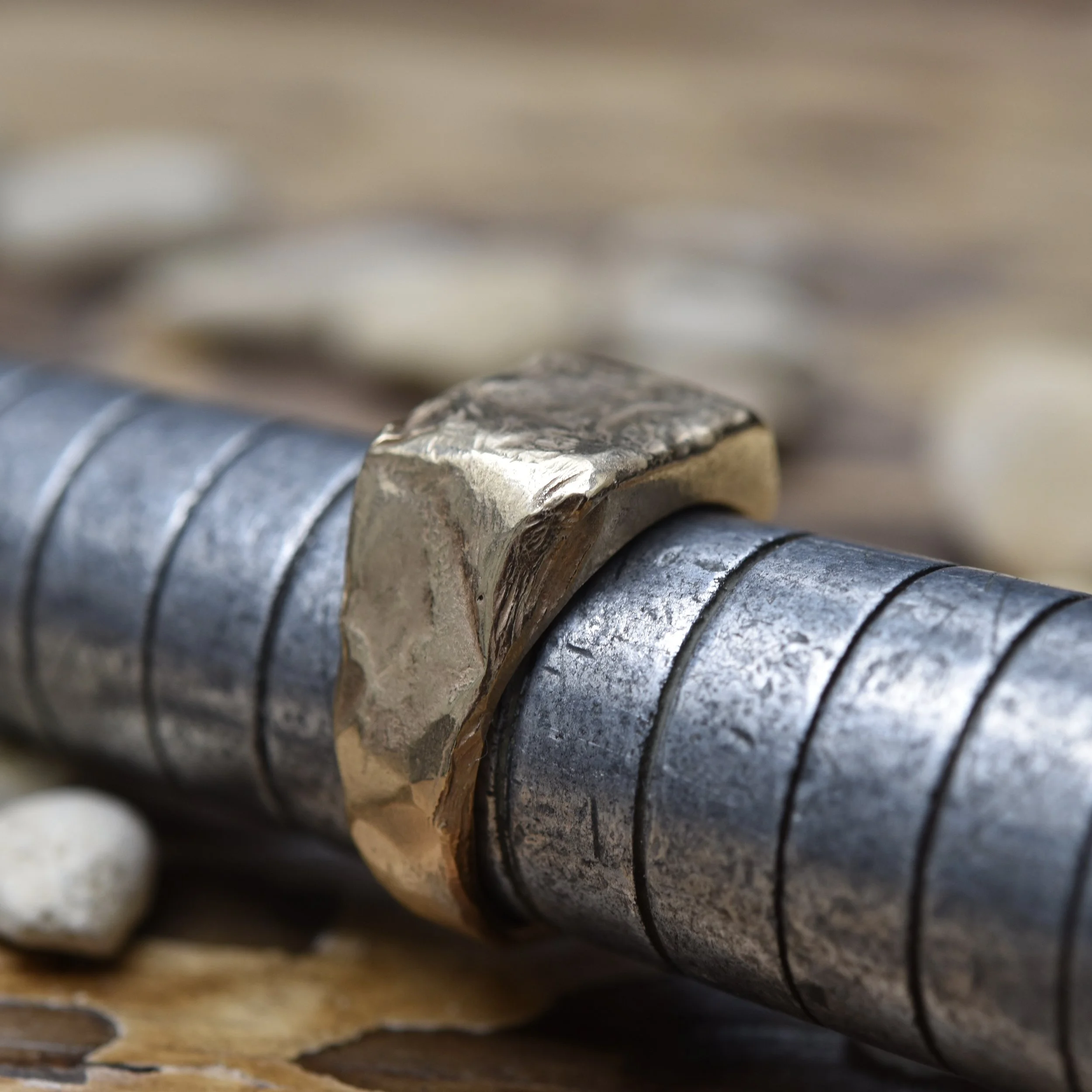 Unisex/Mens Rectangle Melty Signet Ring in 9ct Yellow Gold