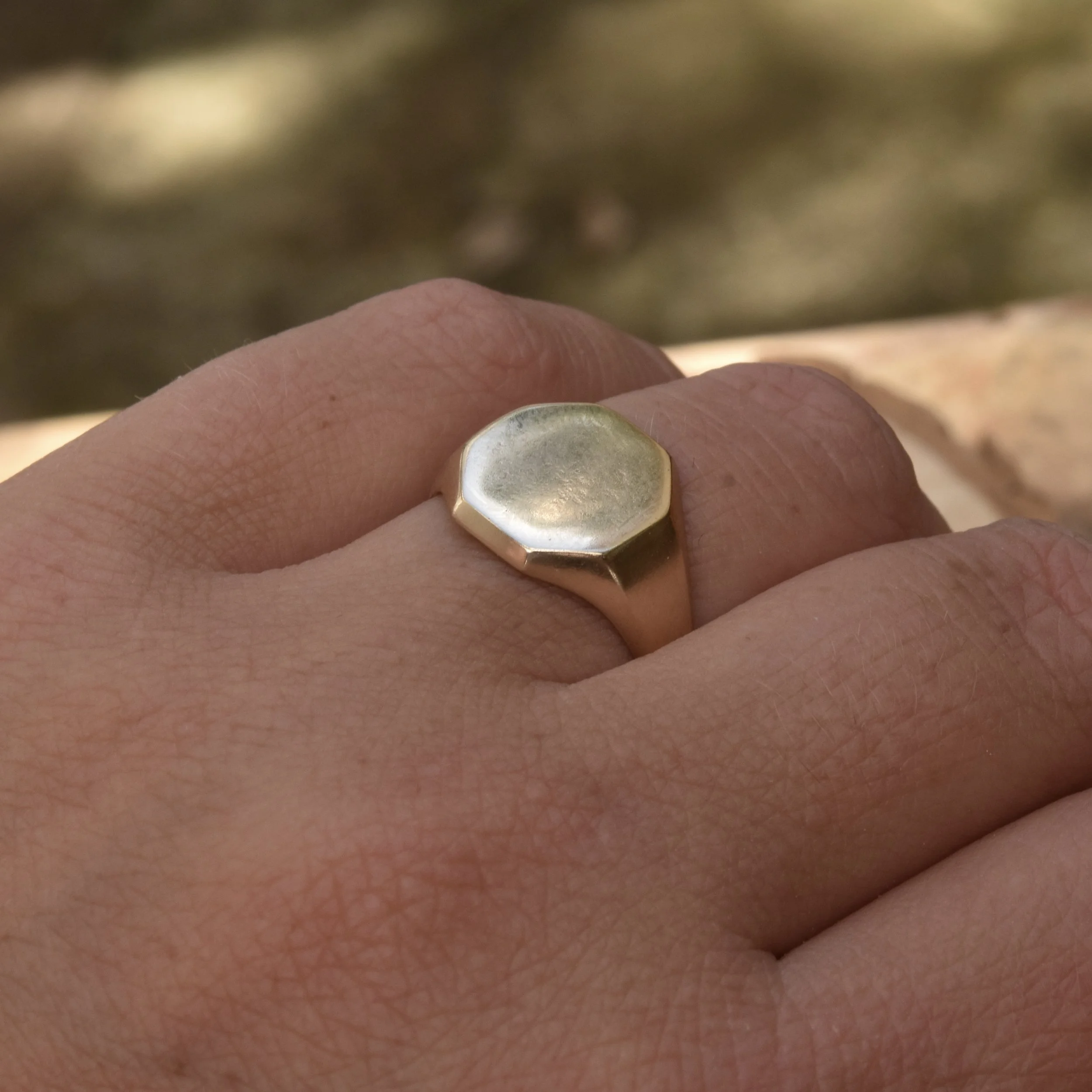 A classic gold signet ring with a bespoke octagon shape.